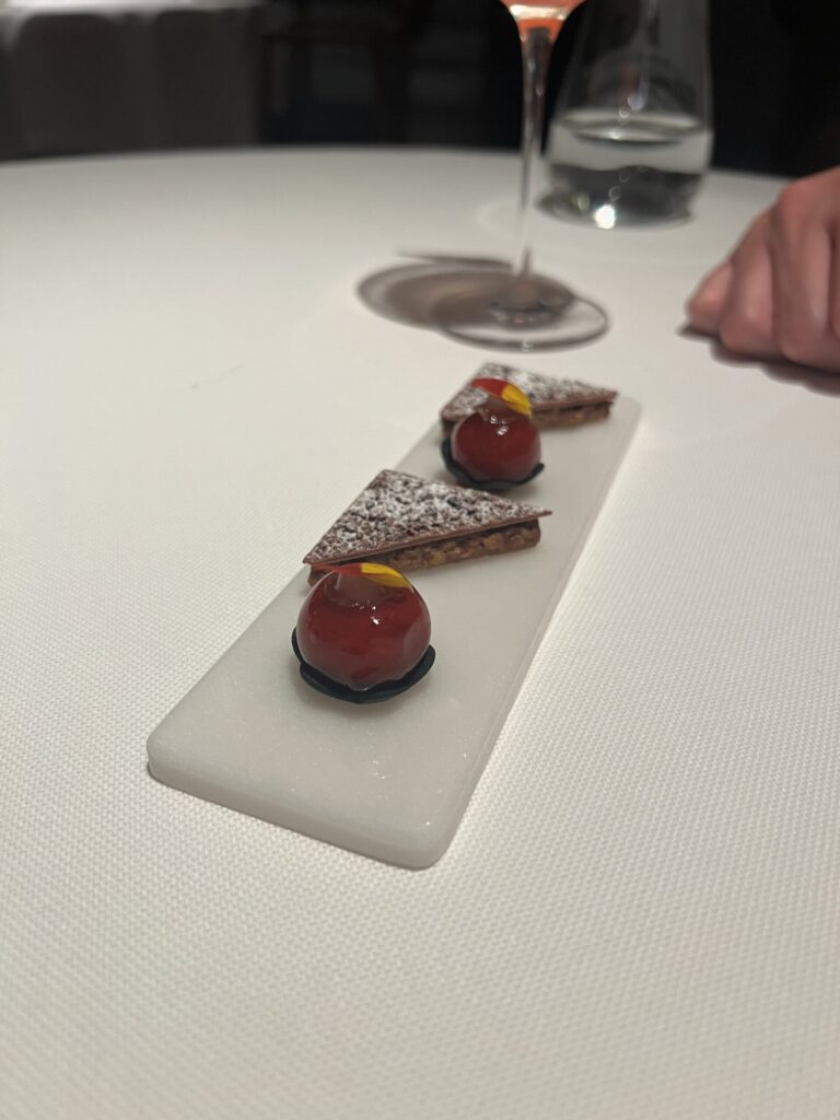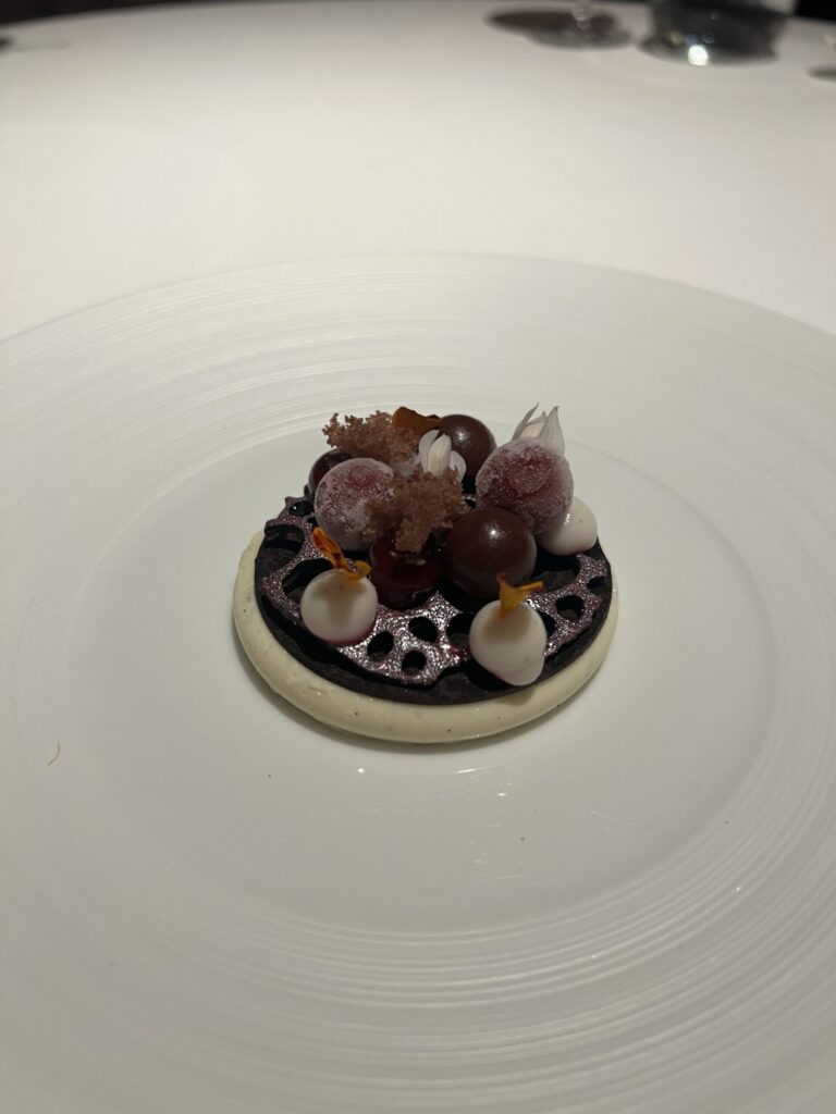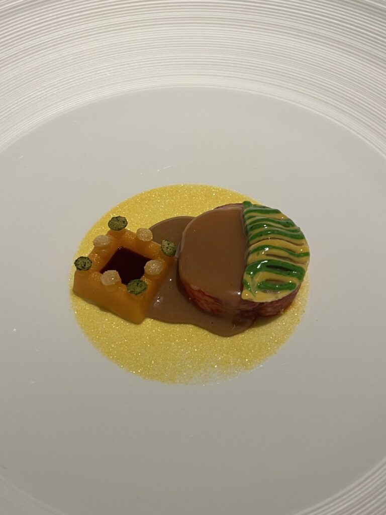 其實最後鴨肉淨係上咗5x8cm長度嘅一塊肉俾我地,肉質係嫩嘅,但都係唔識欣賞佢地嘅醬汁,跟住擺盤上有四粒野,分別有紅菜頭,莓類及少少咖啡元素。